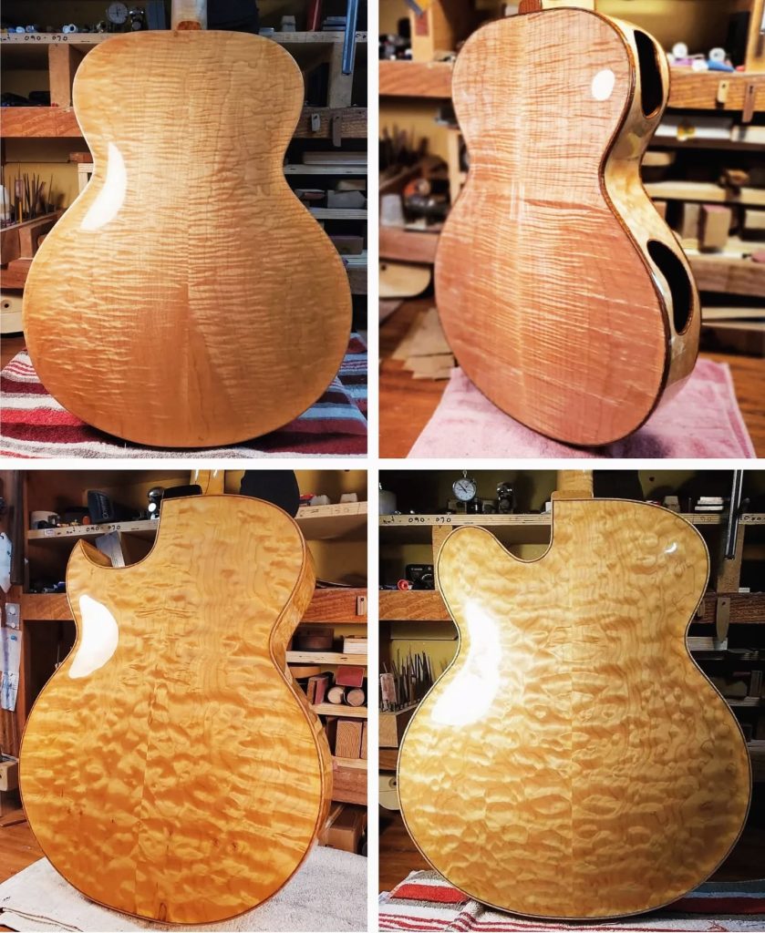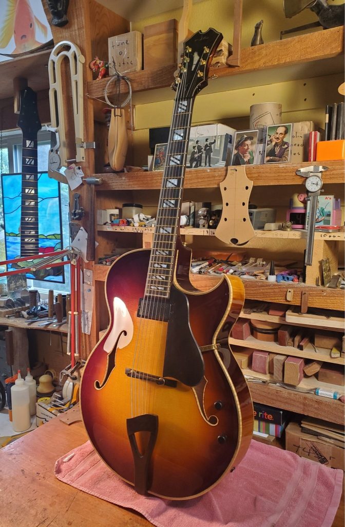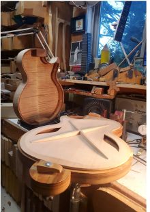 Always intrigued by the design and construction of archtop instruments he began building in 1999. He spent the following decade honing his skills in workshops on both sides of the Atlantic and for two years apprenticed with master luthier Bob Benedetto in Savannah, Ga.